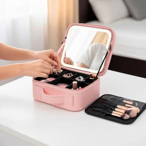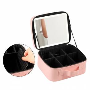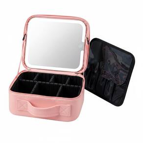 Maleta de Maquiagem Acessórios com Espelho LED Rosa