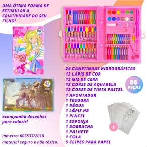 Maleta de pintura infantil com 86 peças que contém: