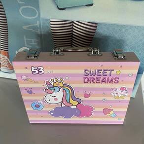Este conjunto completo inclui ferramentas de desenho essenciais, como lápis de cor, apontador de lápis e borracha. Compacto e conveniente.