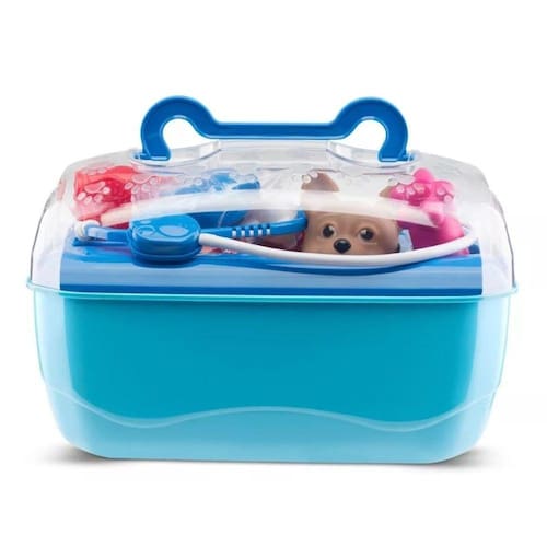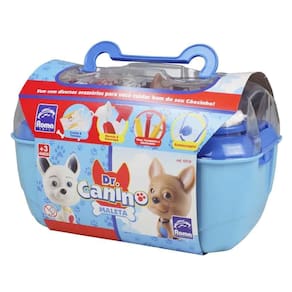 A Maleta Dr. Canino um Pet Shop e Veterinario portatil para levar e brincadeira onde quiser. As criancas, na brincadeira, podem ser especialistas em veterinaria, pois a maleta, alem de acessorios voltados ao ramo veterinario, traz itens para cuidados com o Pet. A maleta contem 1 Cachorrinho 15 Acessórios: 1 Cracha, 1 Tesoura, 1 Martelo, 1 Otoscopio, 1 Pinca, 1 Termometro, 1 Injecaozinha, 1 Estetoscopio, 1 Chuveirinho, 2 Frascos Shampoo e Condicionador, 1 Pente, 1 Secador, 1 Prateleira para acoplar na maleta 2 peças, 1 Tampo para o ralo do lavatorio.Os acessorios ricos em detalhes tornarao sua brincadeira ainda mais divertidaINMETRO: CEBRI/IQB000280 NM300/2002 Ean: 7896965255103