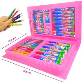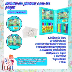 Maleta Escolar Pintura Infantil 48 Peças Estojo Canetinha Cor: Rosa Maleta De Pintura Infantil Escolar Estojo 48 Peças Explore um mundo vibrante de criatividade com a nossa maleta de pintura projetada especialmente para crianças curiosas e destemidas, esta maleta é um tesouro repleto de cores educativas e divertidas. Cores Vibrantes, Aventuras Ilimitadas: Deixe a imaginação voar com uma paleta de cores deslumbrante Detalhes Importantes: Incluímos um apontador para manter seus lápis sempre prontos para a ação e uma borracha para corrigir pequenos erros. Afinal, a arte ensina que todos os traços são valiosos. Portátil e Organizado: Nossa maleta é perfeita para levar em aventuras criativas - em casa, na escola ou em viagens. Tudo é mantido organizado em um espaço personalizado, pronto para acompanhar os pequenos artistas onde quer que eles vão. Estimule a expressão criativa, o aprendizado e a diversão com a Maleta de Pintura Infantil de 48 Peças. É mais do que uma maleta - é um portal para um mundo de cores e imaginação. Presenteie seu pequeno artista hoje e inspire um futuro brilhante Funções: Expressão da criatividade, estimular a imaginação. O que você vai receber em sua casa conteúdo da embalagem Maleta de pintura infantil que contém: 12 Gizes de Cera 10 Lápis de cor 8 Barras de Pintura a Pastel 6 Canetinhas Hidrográficas 6 Desenhos para Colorir 3 Clips para Papel 1 Borracha 1 Apontador 1 Cola Dimensões aproximadas de cada maleta: Largura: 11,5 cm Comprimento: 17 cm Material: Plástico Idade recomendada: Recomendável para crianças maiores de 3 anos. Inmetro:008454/2021 Marca: Europio