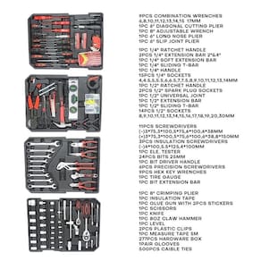 Contém 199 ferramentas profissionais de alta qualidade, a maioria em Cromo-Vanádio e ferramentas isoladas para segurança e durabilidade.