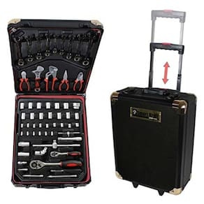 Maleta Jogo Ferramentas 199 Pecas Aluminio Carrinho Profissional Mala Rodinhas Cromo Vanadio Alicates Soquetes Bits Tren