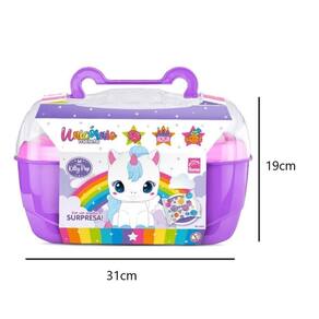 Conteúdo da embalagem: 01 maleta, 01 unicornio, 01 chuveirinho, 01 pente, 02 frascos, 01 saquinho surpresa