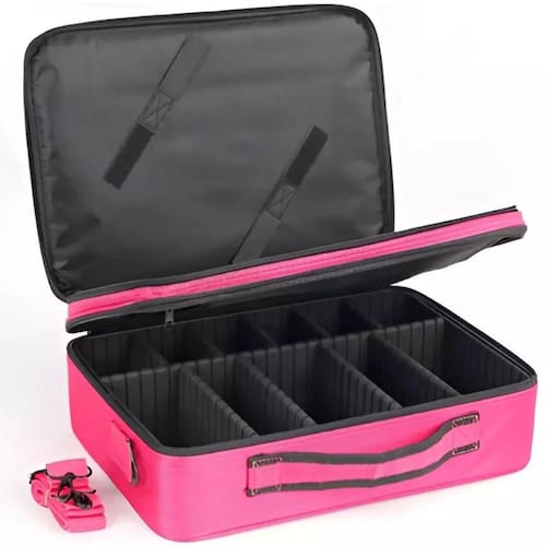 Conteúdo da embalagem: 1 Mala para maquiagem ou viagem com divisórias e alça.