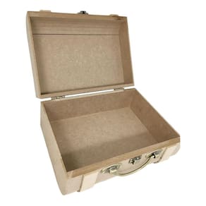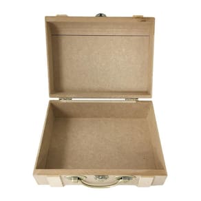 madeira pinus de com um ótimo acabamento pronto para você apenas lixar e criar seus trabalhos. Possui ótimo acabamento deixando a peça pronta para receber tinta. Material muito utilizado em trabalhos de decoração, pintura, decoupage, e muito mais. Maleta mdf com cinta p - 20x15x11
