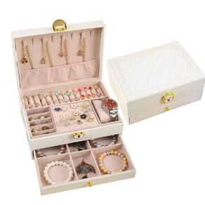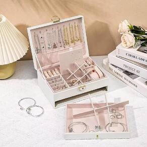 Maleta Organizador De Joias Com Gaveta Portatil 2 Andares Para Brincos Aneis Relogio Viagem Luxo Branco