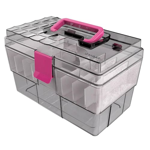Maleta Organizadora Crippa Multiuso Maquiagem Medicamentos Itens Odontológicos Fumê e Rosa.