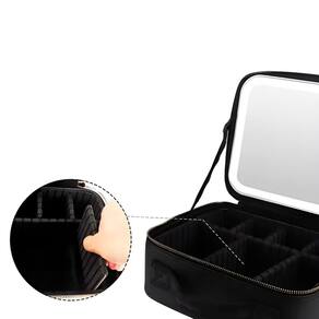 Descubra a solução definitiva para armazenar, organizar e transportar seus produtos de maquiagem e acessórios com elegância e eficiência. A companheira perfeita para profissionais e entusiastas da beleza que buscam funcionalidade aliada a um design sofisticado. -Com divisórias removíveis e ajustáveis, você pode personalizar os compartimentos de acordo com o tamanho e a quantidade dos seus produtos – desde bases e paletas até pincéis e batons. -Construída com materiais resistentes e duráveis. -Os zíperes robustos proporcionam um fechamento seguro e prático. - Ideal para levar suas makes para qualquer lugar: viagens, cursos, atendimentos a clientes ou simplesmente para manter sua penteadeira organizada -Espelho: Integrado com iluminação LED ajustável e removível. Especificações Técnicas: - Modelo: Maleta de Maquiagem com Espelho LED - Tipo de Fecho: Zíper - Quantidade de compartimentos: 7 - Cor: Preto - Espelho LED removível - Dimensões do Espelho Aprox.: 27,5cm (COMPRIMENTO) x 20,5cm (LARGURA) - Dimensões da Maleta Aprox.: 28cm (COMPRIMENTO) x 22,5cm (LARGURA) x 11,5cm (ALTURA) -Itens Inclusos: - 01x Maleta de Maquiagem - 01x Cabo USB - 01x Tampa Estojo Removível - 06x Divisórias