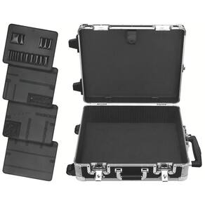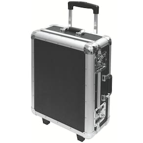 Cantoneiras em aço carbono.Placas de alumínio.Rodinhas de borracha.Cabo do puxador em plástico.Guias do puxador em alumínio.Possui divisória interna e placa porta-ferramentas.Capacidade: 20 kg.As maletas, carros e bancadas são testados em ensaios de carga, para garantir sua resistência durante a utilização na oficina ou indústria.Armazenamento e transporte de ferramentas manuais, peças e acessórios.As ferramentas são produzidas e testadas conforme normas específicas.
