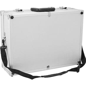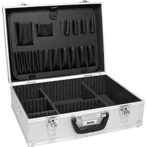 Possui cantos em aço cromado e laterais reforçadas com cantoneira de alumínio, conferindo maior durabilidade, além de fivelas, travas e dobradiças também em aço cromado. Revestida internamente com material sintético macio (EVA) e externamente com alumínio. Conta com 5 divisões removíveis e ajustáveis, que adequam-se a diferentes tamanhos e formatos de ferramentas.