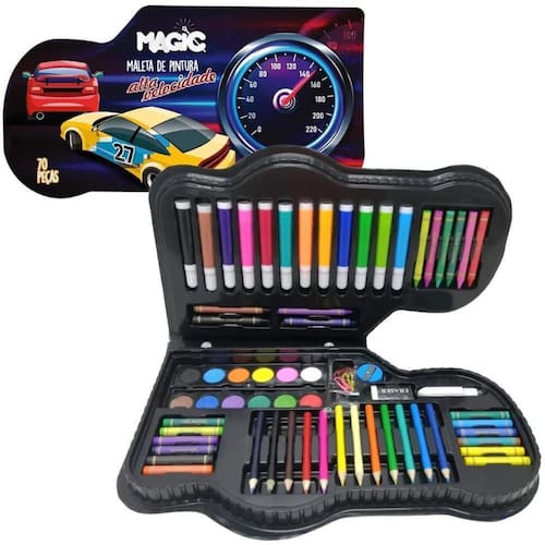 Divirta-se pintando e descobrindo novos materiais com a maleta de pintura Alta Velocidade da Escolar Magic. Contem 70 pecas para que voce pinte e use sua imaginacao ate cansar Aprenda brincando