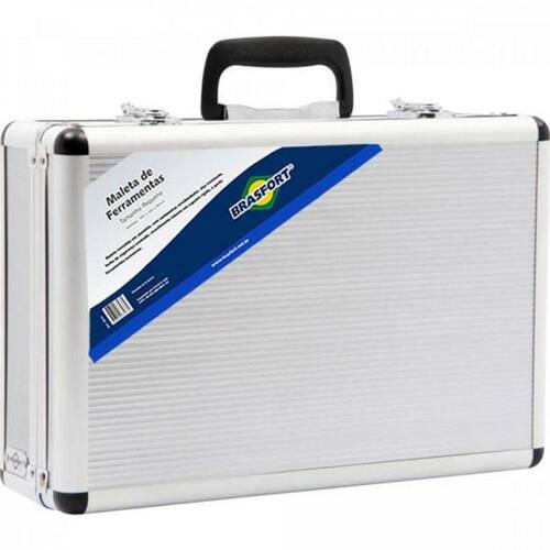 Maleta Pequena Para Ferramentas Brasfort Acomodar ferramentas e objetos de uso geral; Corpo com estrutura em papelão prensado, envolvido por material protetor em PVC na cor cinza com alça PVC na cor preta, cantoneiras e detalhes em aço carbono cromado e forração em PVC cinza.Dimensões:395 X 240 X 90mm (CxLxA) Pesquisa:maleta|ferramentas|brasfort|