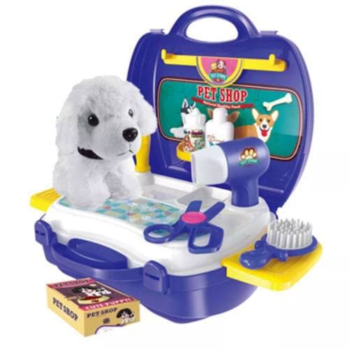 A maleta Pet Shop contém diversos acessórios para brincar e se divertir, como um cachorrinho, chuveirinho, secador, escova e muito mais. São ao todo 16 itens para você soltar a imaginação e criar suas próprias histórias.