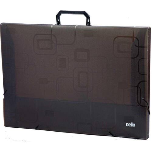 Maleta em polipropileno, com design exclusivo Dello. Possui abas com encaixe para canetas e régua geométrica. Ideal para uso escolar e apresentação de trabalhos de grande formato. Produto certificado pelo INMETRO.