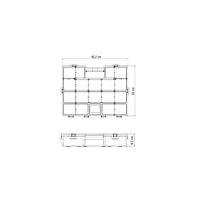 INFORMAÇÕES TÉCNICAS Corpo e divisórias móveis injetadas em polímero de alta resistência.19 compartimentos internos.14 divisórias móveis que possibilitam a personalização do espaço interno da maleta.Tampa transparente com reforços que aumentam sua resistência.4 Travas para fechamento seguro (2 frontais e 2 laterais).Projetada para fácil personalização e portabilidade.Possibilita encaixar martelo de tamanho pequeno e médio.