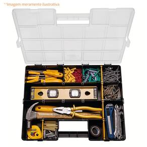 Especificações: - Corpo e divisórias móveis injetadas em polímero de alta resistência. - 19 compartimentos internos. - 14 divisórias móveis que possibilitam a personalização do espaço interno da maleta. - Tampa transparente com reforços que aumentam sua resistência. - 4 Travas para fechamento seguro (2 frontais e 2 laterais). - Projetada para fácil personalização e portabilidade. - Possibilita encaixar martelo de tamanho pequeno e médio.