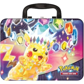 Esta maleta de metal robusta está cheia de produtos de Pokémon prontos para alegrar o seu dia!