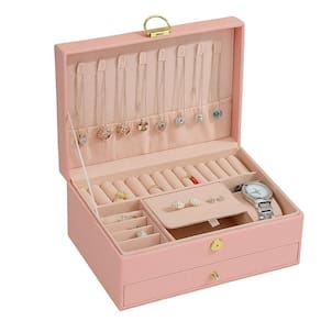Maleta Porta Joias Organizador Com Gaveta 2 Andares Para Brincos Aneis Pulseiras Relogio Viagem Rosa