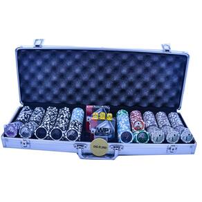 O kit é composto por um total de 500 fichas de poker de peso profissional, acondicionadas em uma maleta de alumínio com revestimento interno em espuma de alta densidade para proteção e organização.