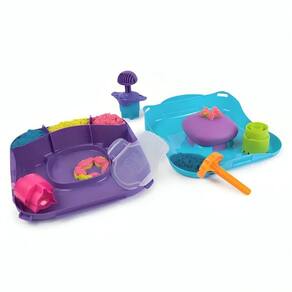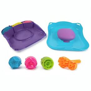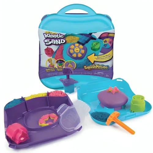 Dê vida à criatividade e ao movimento com o conjunto Kinetic Sand SquishMotion Este kit de areia cinética despertará a imaginação e a emoção enquanto as crianças se espremem para revelar suas hipnotizantes criações de areia em um espaço de jogo em movimento SquishMotion é tão fácil quanto colocar, carregar e esmagar. Camada de areia cinética rosa, amarela e azul dentro da caixa, alise com o cortador de rugas e carregue o tubarão, o sol ou a estrela em sua ferramenta de carimbo. Pressione e esmague no espaço de espuma de areia e observe o movimento de suas criações - o tubarão mastiga, o sol floresce e a estrela explode Flua, misture e coloque camadas diretamente no espaço de esmagamento, corte com o cortador de rugas e use o carimbo de sapato para uma brincadeira mais interminável. As squishibilidades são infinitas