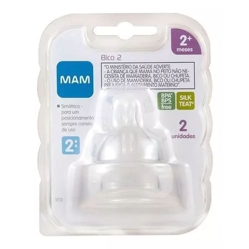 Indicado para bebês a partir de 2 meses. Ideal para fluxo médio. Textura macia e sedosa. Compatível com todas as mamadeiras MAM e com copo Trainer+. BPA free. Marca: MAM BRASIL LTDA ###