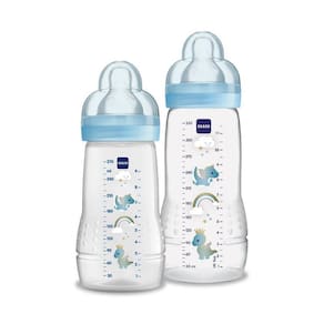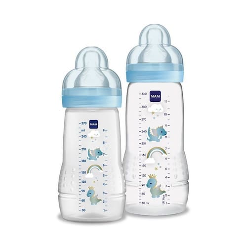 - Embalagem dupla: contém 1 mamadeira de 270ml e 1 mamadeira de 330ml