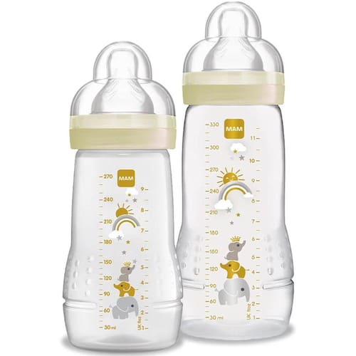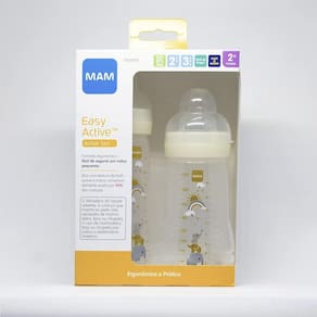 O Easy Active Set é formado por duas mamadeiras: uma Easy Active 270ml e uma Easy Active 330ml, ideal para presentear. As Mamadeiras Easy Active MAM, foram desenvolvidas com ajuda de especialistas da saúde e são recomendada a partir de 4 meses. Fácil de segurar de forma independente, o formato ergonômico da mamadeira Easy Active é ideal para mãos pequenas. Além disso, cores vibrantes e designs encantadores chamam a atenção Bico MAM com tecnologia SkinSoft, macio com superfície texturizada e sedosa, comprovadamente aceita por 94% das crianças 1 Os bicos da MAM se encaixam em todas as mamadeiras da MAM e no copo Trainer+ 1. TAMPA - À prova de vazamento, protege da sujeira. Também funciona como copo de medida graças à escala integrada .