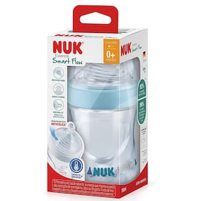 Esta Mamadeira Essence Smart Flow 150Ml +0M Azul Nuk foi desenvolvida pensando no máximo conforto e proteção para a pele sensível do bebê. Desenvolvida com atenção à todas as recomendações dos profissionais de saúde para garantir um produto de qualidade, que atenda às necessidades dos pais e proporcionando conforto aos bebês. ________________ Mais informações sobre o produto: Baseado em estudos clínicos e científicos , o sistema revolucionário do bico de mamadeira da NUK Essence Smart, com tecnologia 100% desenvolvida, testada e fabricada na Alemanha, se destaca por possuir múltiplos furos que possuem alta aceitação entre as crianças pois variam em quantidade para assegurar um fluxo adequado de acordo com a consistência de cada alimento. -tampa com função antivazamento permite a vedação total da mamadeira sem o auxílio do disco de vedação; -formato que possui uma base ainda mais larga para oferecer maior conforto para a criança durante a alimentação; -mantém a conhecida e admirada qualidade NUK com uso de um silicone supermacio e resistente; -bocal Extra largo facilita a limpeza e o preparo do alimento na mamadeira; -válvula Nuk Air System, que reduz a ingestão de ar durante a alimentação; -frasco super-resistente, em formato anatômico e livre de BPA; -bico: +0 meses fluxo lento 3 furos. Com indicador de temperatura para ajudar os pais na tarefa de assegurar a temperatura adequada dos alimentos para o consumo da criança. Idealmente, a comida para crianças deve ter a temperatura corporal 37ºC= Tom escuro . Se o conteúdo do frasco estiver muito quente, o indicador de temperatura ficará branco. Aguarde o indicador voltar à cor azul para oferecer a mamadeira à criança. Aviso importante: este produto somente deve ser na alimentação de crianças menores de 1 um ano de idade com indicação expressa de médico ou nutricionista. O aleitamento materno evita infecções e alergias e fortalece o vínculo mãe-filho. Sobre a marca: A NUK ajuda a promover o crescimento saudável dos bebês com produtos seguros, simples e que estimulem o seu desenvolvimento. A empresa foi fundada por dois renomados odontopediatras na Alemanha, em 1956, e sua filosofia segue sendo tão importante hoje como era então: Apoiar e promover o desenvolvimento oral dos bebês. Marca: Não Informado