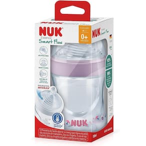 Esta Mamadeira Essence Smart Flow 150Ml +0M Lilás Nuk foi desenvolvida pensando no máximo conforto e proteção para a pele sensível do bebê. Desenvolvida com atenção à todas as recomendações dos profissionais de saúde para garantir um produto de qualidade, que atenda às necessidades dos pais e proporcionando conforto aos bebês.________________Mais informações sobre o produto:Baseado em estudos clínicos e científicos , o sistema revolucionário do bico de mamadeira da NUK Essence Smart, com tecnologia 100% desenvolvida, testada e fabricada na Alemanha, se destaca por possuir múltiplos furos que possuem alta aceitação entre as crianças pois variam em quantidade para assegurar um fluxo adequado de acordo com a consistência de cada alimento.-tampa com função antivazamento permite a vedação total da mamadeira sem o auxílio do disco de vedação;-formato que possui uma base ainda mais larga para oferecer maior conforto para a criança durante a alimentação;-mantém a conhecida e admirada qualidade NUK com uso de um silicone supermacio e resistente;-bocal Extra largo facilita a limpeza e o preparo do alimento na mamadeira;-válvula Nuk Air System, que reduz a ingestão de ar durante a alimentação;-frasco super-resistente, em formato anatômico e livre de BPA;-bico: +0 meses fluxo lento 3 furos.Com indicador de temperatura para ajudar os pais na tarefa de assegurar a temperatura adequada dos alimentos para o consumo da criança. Idealmente, a comida para crianças deve ter a temperatura corporal (37ºC= Tom escuro). Se o conteúdo do frasco estiver muito quente, o indicador de temperatura ficará branco. Aguarde o indicador voltar à cor azul para oferecer a mamadeira à criança.Aviso importante: este produto somente deve ser usado na alimentação de crianças menores de 1 (um) ano de idade com indicação expressa de médico ou nutricionista. O aleitamento materno evita infecções e alergias e fortalece o vínculo mãe-filho.Sobre a marca:A NUK ajuda a promover o crescimento saudável dos bebês com produtos seguros, simples e que estimulem o seu desenvolvimento. A empresa foi fundada por dois renomados odontopediatras na Alemanha, em 1956, e sua filosofia segue sendo tão importante hoje como era então: Apoiar e promover o desenvolvimento oral dos bebês.