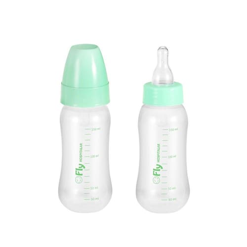 Mamadeira Hospitalar Autoclavável Bico Redondo 150ml Fly. Frasco transparente em Polipropileno atóxico, livre de Bisfenol A, sem desenhos, resistente a Autoclave. Bico Autoclavável em Silicone atóxico, antialérgico, insípido e inodoro.