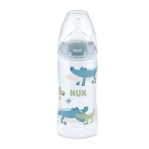 A mamadeira Nuk First Choice é uma opção popular para alimentar bebês acima de 6 meses de idade. Ela possui capacidade de 300ml e é livre de BPA (bisfenol A), o que significa que não contém substâncias químicas prejudiciais à saúde.