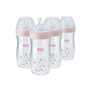 Mamadeira NUK Simply Natural com SafeTemp, Girl, 9 onças, 4 unidades - Vários orifícios para mamilos fornecem uma alimentação natural, assim como o seio da mãe - Possui o indicador SafeTemp da NUK, que muda de cor quando o leite está muito quente - O bico vem com 3, 6 ou 9 orifícios, dependendo da taxa de fluxo - a mamadeira de 5 onças vem com bico de fluxo lento que tem 3 orifícios, 9 onças vem com bico de fluxo lento que tem 3 orifícios, 9 onças vem com bico de fluxo lento que tem 3 orifícios, 9 onças vem com bico médio bico de fluxo com 6 orifícios - O ventilador anticólico avançado de 1 peça ajuda a reduzir cólicas, gases e cuspir - Mesmo formato do mamilo que amamenta durante a amamentação - Mamilo flexível se move com o bebê para uma pegada contínua — A mamadeira Tritan transparente resistente a odores e manchas não contém BPA e é fácil de usar, montar e limpar — Disponível em modelos neutros para meninos, meninas e gêneros neutros — Disponível em tamanhos de 5 onças e 9 onças