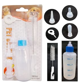 Características: Mamadeira de Pet Filhotes Para todos os portes 4 Bicos de silicone com tamanhos variados para se ajustar ao crescimento do pet Cão Gato Material: Polipropileno LIVRE DE BPA Capacidade: 60ml