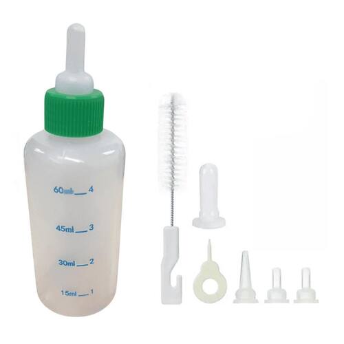 Características: Mamadeira de Pet Filhotes Para todos os portes 4 Bicos de silicone com tamanhos variados para se ajustar ao crescimento do pet Cão Gato Material: Polipropileno LIVRE DE BPA Capacidade: 60ml