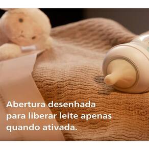 O bico com formato largo é feito de silicone e o copo em polipropileno, fácil de limpar, com uma montagem rápida e prática, combina amamentação natural com a mamadeira. As pétalas no bico aumentam a flexibilidade e promovem a pega correta, para que o bebê possa abocanhá-lo como se fosse o seio, facilitando a o ritmo da amamentação.