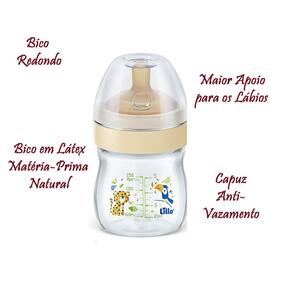 Contém: 1 mamadeira de 150 ml Bico: redondo Idade: +0 meses Composição: frasco, rosca e capuz: polipropileno; bico: látex Livre de bpa Usar sempre sob a supervisão de um adulto