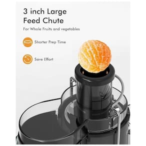 RECURSOS DE SEGURANÇA E FÁCIL DE LIMPAR Braço de travamento de segurança evita que o espremedor funcione sem a tampa travada no lugar. A proteção contra sobrecarga desliga automaticamente a máquina quando detecta que a máquina de espremedor está sobrecarregada. O fundo do espremedor de sumos está equipado com pés de borracha antideslizantes, para que possa utilizar o espremedor de forma mais segura e estável. Todas as partes removíveis do espremedor podem ser lavadas na máquina de lavar loiça, fáceis de montar e desmontar, tornando a limpeza mais fácil e rápida.