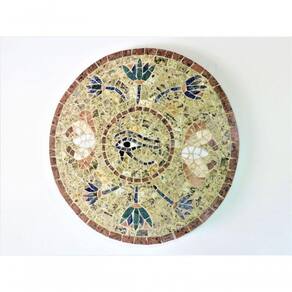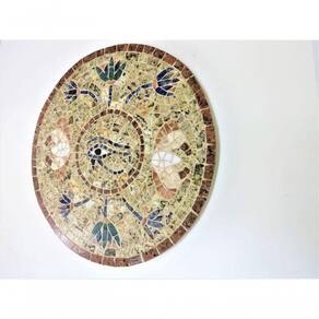 Especificações técnicas do mosaico: Feito com pedras - Mármores e granitos de todo o Brasil e importados da Europa e Ásia - para obter todas as cores desejadas em pedras naturais; Borda com acabamento em rejunte; Vêm previamente colada sobre uma chapa cimentícia leve. Vem com um gancho em inox atrás para pendurar na parede. Já vem incluído bucha 8 e parafuso/escápula 5mmx80mm para pendurar. Resistência e Durabilidade em área interna e externa; Espessura de 20mm; Mosaico feito integralmente à mão com técnica do mosaico romano;