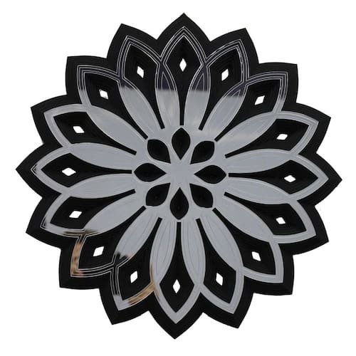 Mandalas decorativas ambientes sala quarto 65x65 -38.124 G Simbologia As mandalas pelos seus círculos e desenhos representam a concentração de energia no ambiente que estão. Universalmente a mandala é o símbolo da integração e da harmonia. Além do componente místico, as mandalas tem tomado o seu espaço na decoração e harmonização de ambientes. Características Medidas: Espessura: 4 cm Altura: 65 cm Largura: 65 cm Composição: MDF e Espelho acrílico prata Cor: Preto e prata Fixação: acompanha pendurador garrinha que permite a regulagem da mandala. Ambientes Podem ser usadas para decoração de salas, quartos, banheiros, cozinhas, ambientes comerciais e outras aplicações que sua imaginação e bom gosto permitirem. Garantia: 3 meses contra defeito de fabricação. Limpeza: Utilizar um pano levemente umedecido. Marca: Creatus.