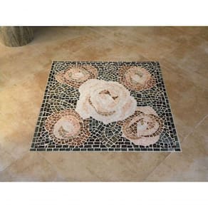 Especificações técnicas do mosaico: Feito com pedras - Mármores e granitos de todo o e importados da Europa e Ásia - para obter todas as cores desejadas em pedras naturais; Vem todo montado sobre tela, só colocar conforme manual de colocação, Resistência e Durabilidade em área interna e externa; Espessura de 10 mm Mesma espessura do porcelanato ou piso cerâmico Liso e agradável para uso diário; Mosaico feito integralmente à mão com técnica do mosaico romano;Dúvidas frequentes: