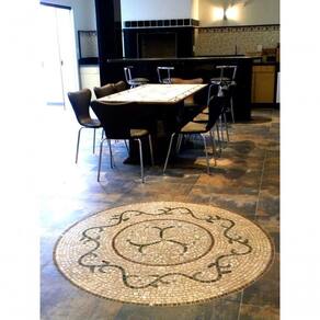 Especificações técnicas do mosaico: Feito com pedras - Mármores e granitos de todo o Brasil e importados da Europa e Ásia - para obter todas as cores desejadas em pedras naturais; Vem todo montado sobre tela, só colocar conforme manual de colocação, Resistência e Durabilidade em área interna e externa; Espessura de 10 mm Mesma espessura do porcelanato ou piso cerâmico Liso e agradável para uso diário; Mosaico feito integralmente à mão com técnica do mosaico romano;