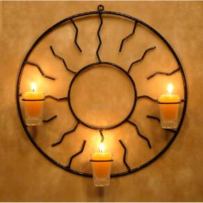 Mandala Sol 38 cm Acompanha 3 velas no copinho na cor amarela Produtos da marca Velitas. Somos uma fábrica, de velas e ferros decorativos, desde de 1984 no mercado. Mandala: Peça em ferro com pintura eletrostática, que garante uma maior resistência e durabilidade em comparação com peças esmaltadas ou com pintura spray. Pintura marrom escura, quase preta, com minúsculos pontos pretos e dourados. A pintura dá um efeito especial a peça. Peça produzida de forma artesanal. Medidas: diâmetro: 38 cm profundidade: 8 cm Peça desenhada para uso na parede, não há risco de a chama estragar a pintura se forem usadas somente velas de parafina pura. Para paredes de tijolo, recomendamos o uso de bucha com parafuso, o mais seguro é o parafuso em L, ele garante uma melhor fixação. Copinho de vidro: O copo de vidro é da Nadir Figueiredo, além de ser resistente ele é facilmente encontrado em vários lugares no Brasil. Medidas do copo: altura: 7 cm diâmetro superior (boca): 5,2 cm diâmetro inferior (base): 3,5 cm Velas: Velas de parafina pura Petrobras, contêm apenas corante nas velas coloridas. A vela pura garante uma maior durabilidade, não produz fumaça preta que possa sujar a parede ou criar um aspecto desagradável, e também possui um cheiro suave e natural da parafina. Nossas velas no copinho foram projetadas para fácil reposição já que são removíveis, o produto acompanha indicações de uso para facilitar a limpeza do copo após a utilização. Duração da vela: Aproximadamente 12 horas, o tempo pode variar de acordo com a temperatura ambiente. Medidas: altura: 5,2 cm diâmetro superior (boca): 4,5 cm diâmetro inferior(base): 2,7 cm Imagens meramente ilustrativas, o produto pode apresentar pequenas variações por se tratar de um produto artesanal. Aviso de segurança: Acenda as velas longe de produtos inflamáveis, de corrente de ar e em recipiente protetor. Não deixe velas acesas desacompanhadas.