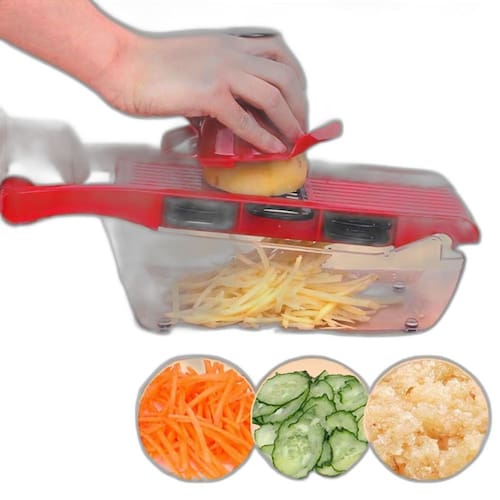 Mandolina 10 em 1 Para Fatiar E Ralar Verduras E Frutas Este utensílio é perfeito para tornar o preparo dos alimentos rápido e eficiente. O ralador, Fatiador e cortador de legumes multifuncional oferece seis funções em um único produto, proporcionando praticidade e versatilidade na sua cozinha. Com lâminas afiadas de aço inoxidável, você poderá ralar, fatiar e cortar uma variedade de legumes e vegetais de forma rápida e precisa. Desde fatias finas e uniformes até ralados grossos, este utensílio atende a todas as suas necessidades culinárias. Além disso, o design ergonômico e seguro garante conforto durante o uso, enquanto a base antiderrapante mantém o utensílio firme e estável na bancada. Não perca mais tempo cortando e fatiando manualmente. Adquira agora o Ralador, Fatiador e Cortador de Legumes Chefe Multifuncional 6 em 1 e desfrute de refeições deliciosas de forma prática e rápida. Transforme sua cozinha em um espaço de criatividade gastronômica Vantagens: 5 Lâminas com diferentes cortes e 1 descascador; Cortes precisos em todas as fatias; Maior praticidade; Reduz o tempo na preparação da refeição; Ergonomicamente projetado; Acaba com o risco de lesão/corte nas mãos; Corta enorme variedade de alimentos; Fácil de limpar. Especificações Técnicas: Cor: Varia conforme disponibilidade em ; Tamanho: 32 x 9 x 11 cm; Peso: 380 g; Material: Aço Inoxidável e plástico ultra resistente; Capacidade: 800 ml; Kit Inclui: 05 lâminas, 01 placa de corte, 01 protetor de mão, 01 descascador e 01 caixa de armazenamento. Marca: Não Informado Ean: 7905095682410
