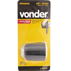 Mandril de aperto rápido 3/8 - 10mm 24 fios unf - vonder Indicado para furadeiras manuais e parafusadeiras a bateriaDispensa a utilização da chave para mandril, facilitando o trabalho do operador, que coloca e retira o acessório do equipamento utilizando apenas as mãos. Capacidade máxima do mandril:3/8 - 10 mmCapacidade mínima do mandril:1/32 - 0,8 mmTipo de encaixe do mandril: roscaMedida do cone/rosca do mandril: rosca 3/8 - 24 fios unfTipo de furo do mandril: passanteMaterial da capa do mandril: plásticoComprimento do mandril fechado:48,0 mmDiâmetro do corpo do mandril:41,0 mmGarantia - e cdc :garantia legal: 90 dias