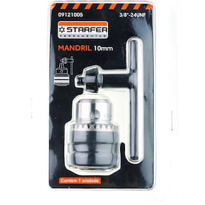 Mandril STARFER 10mm 3/8 Pol. 24UNFMandril com rosca para furadeira de ótima qualidade.Abertura até 3/8" (10mm).Seu uso é em furadeiras normais ou reversíveis.Indicado para encaixe de brocas em furadeiras.Ref.: 9121005Marca: Starfer Ean: 7891638035341