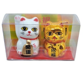 Maneki Neko Gato Da Sorte Kit Com 2 Em Resina 5 Cm Altura Maneki Neko significa literalmente gato acenando se caracteriza Por um gato sentado com uma das patas levantadas. A pata levantada seria para atrair sorte e o gato que serviu de Inspiração para este amuleto foi o Bobtail Japonês, uma raça rara E muito antiga,além de ser única raça considerada nativa do Japão