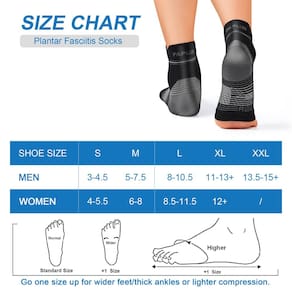 - Alívio rápido da dor: nossa manga de compressão ajuda a aliviar a dor no pé esticando os tendões e aliviando a pressão na fáscia plantar. Incluindo alívio da fascite plantar, dor no arco e dor no calcanhar. Eles também podem melhorar a circulação do pé, estabilizar a articulação do tornozelo, auxiliar na recuperação de edema e esporão no calcanhar e ajuda a estabilizar os pés e evitar lesões.