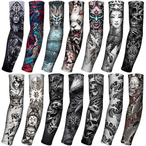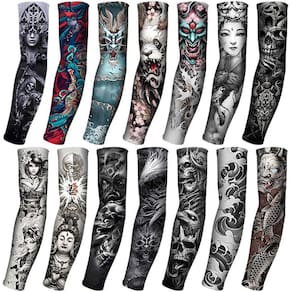 PSMILE 4 pares de mangas para ciclismo al aire libre con diseño de tatuaje 3D, protección UV, secado rápido y efecto refrescante para verano, para hombres y mujeres. - Fabricadas con 92% nailon y 8% spandex, tela suave y con protección UV para proteger los brazos de las quemaduras solares. - Medidas de 40x8 cm aprox. Talla única unisex, transpirable y elástica para un ajuste cómodo. - Perfectas para conducir, actividades al aire libre, senderismo, camping, baloncesto, golf, correr, fútbol, ciclismo y más. - Adecuadas para hip hop, deportes al aire libre, fiestas, bares, presentaciones en escenario, etc. - Empaque con 4 pares, los diseños se envían de forma aleatoria.