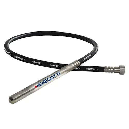 Mangote 40730041 28mm x 2. 5m menegotti o mangote para de imersão portátil, mediante conexão ao motor, transmite o movimento a um elemento excêntrico situado dentro da ponteira, produzindo assim a vibração para ser aplicada ao concreto. Especificações técnicas: comprimento: 2,50m diâmetro ponteira: 28mm peso: 4,95kg